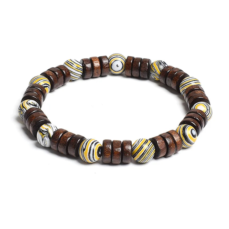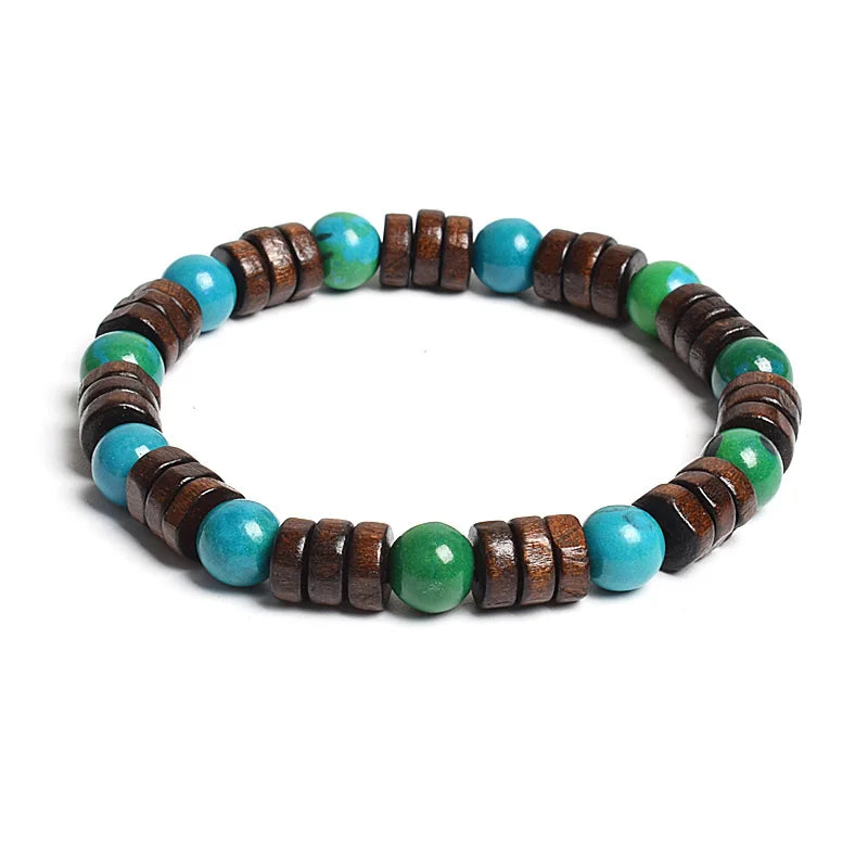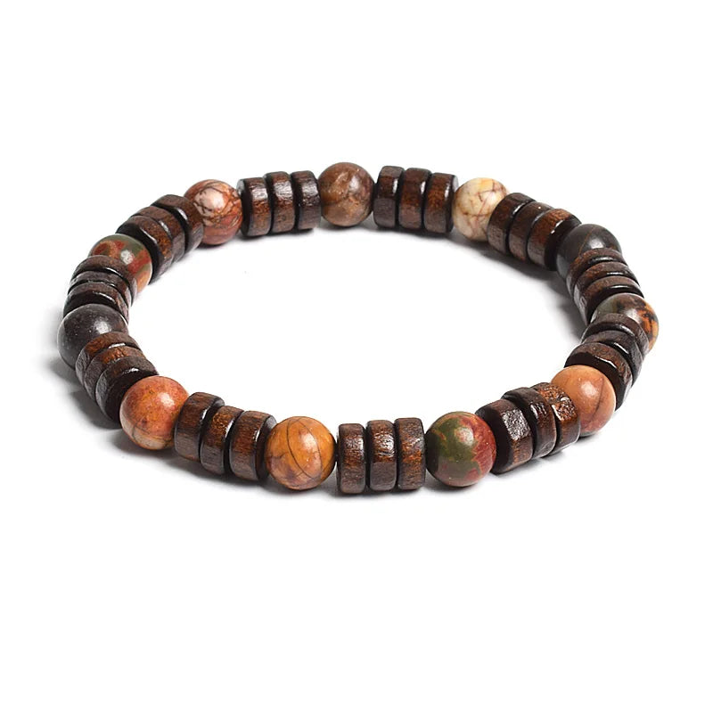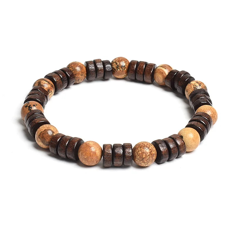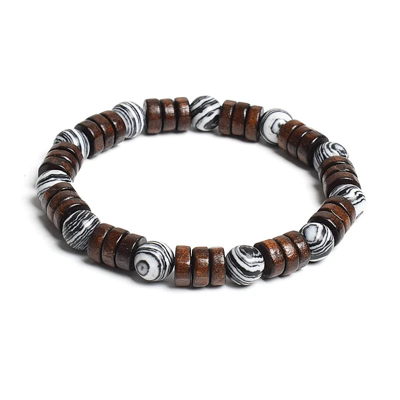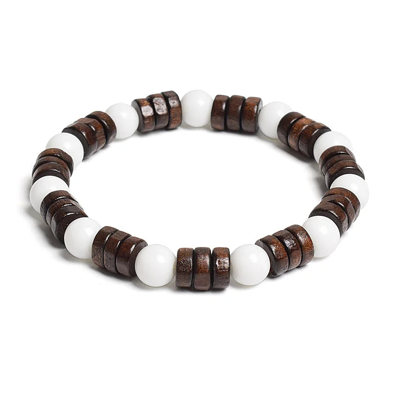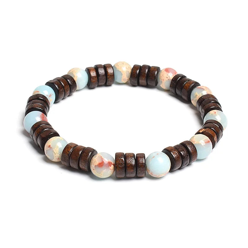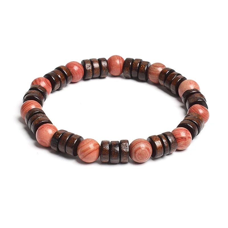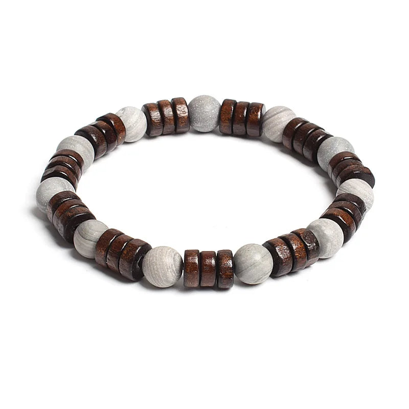 Bring natural balance to your style with this handcrafted bracelet combining smooth 8mm round natural stone beads with classic cylindrical wood spacers. The mix of wood and stone creates a timeless, earthy look that’s both casual and versatile. Designed with a durable elastic rope, this unisex bracelet is comfortable for daily wear and perfect for yoga, meditation, or simply adding a touch of natural charm to any outfit. A thoughtful gift for both men and women.