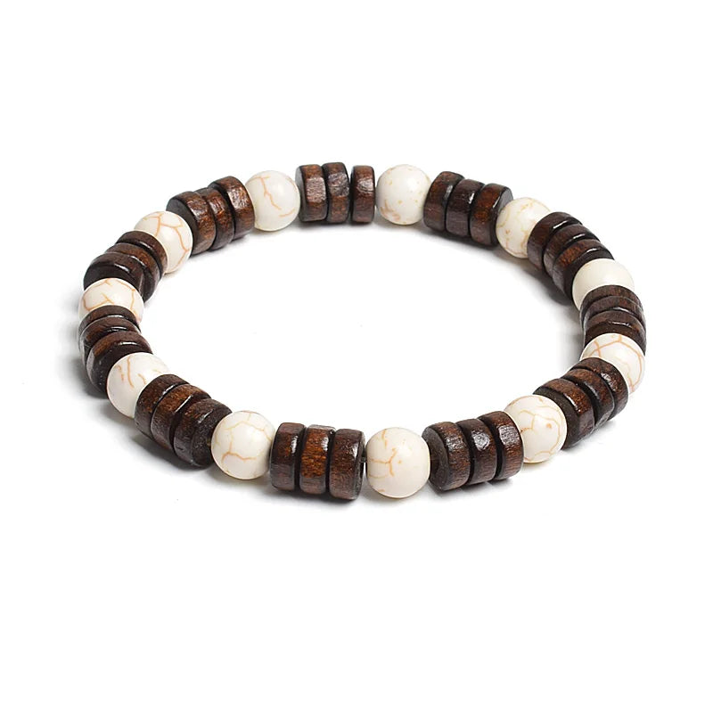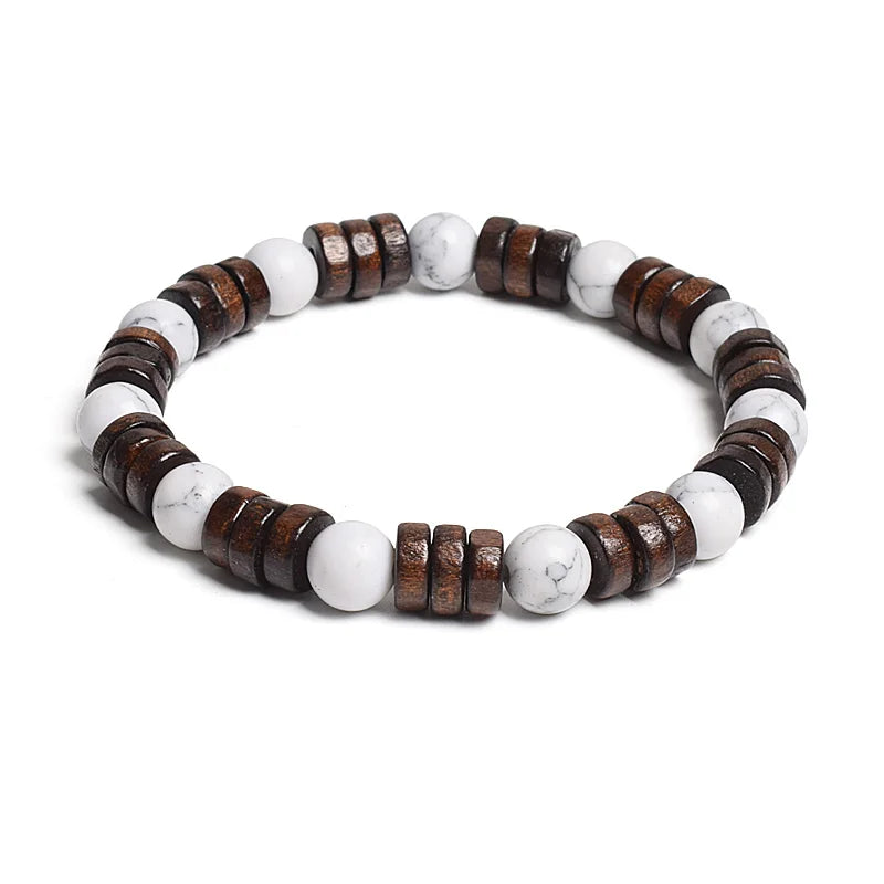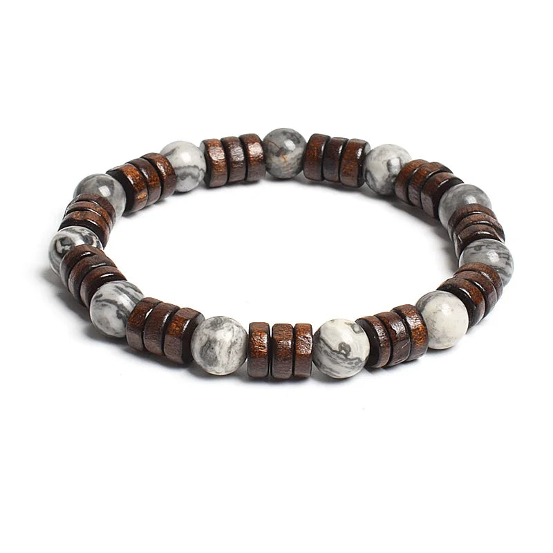 - Materials: Natural Stone Beads (8mm), Cylindrical Wooden Spacer Beads