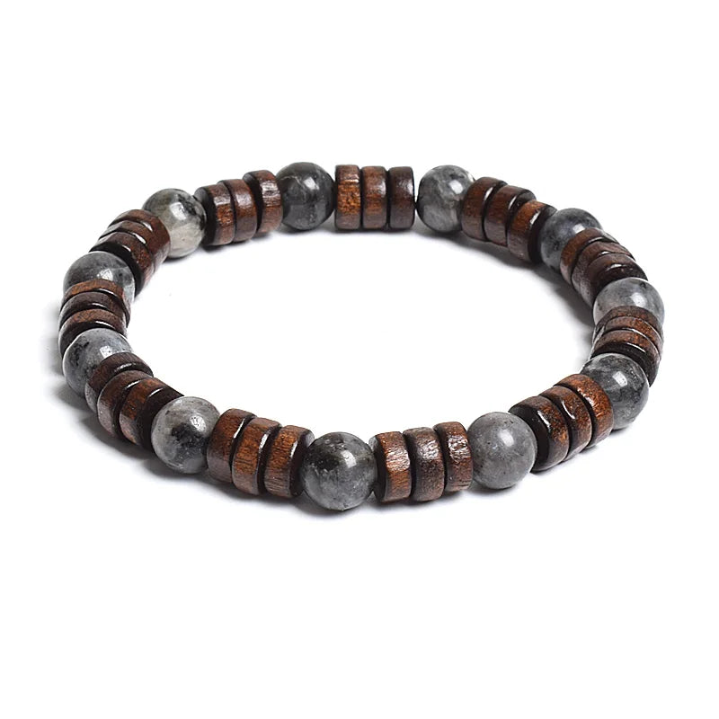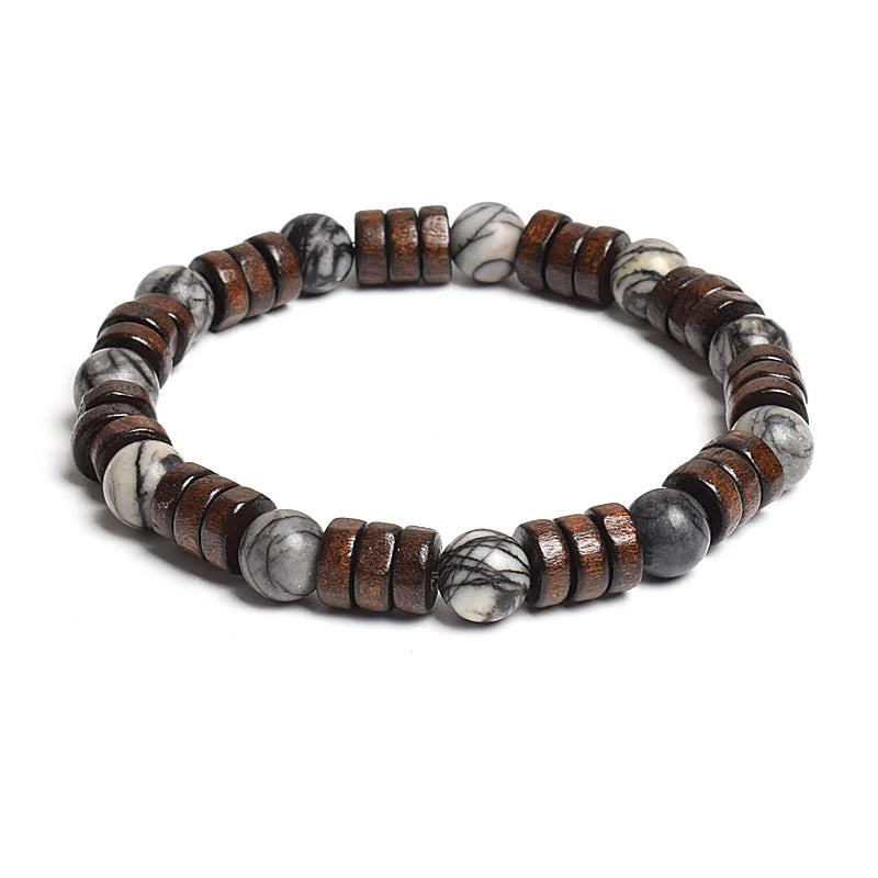 8mm Cylinder Wood Beads & Round Natural Stone Bracelets