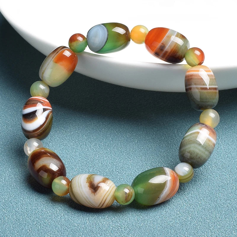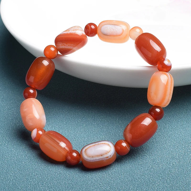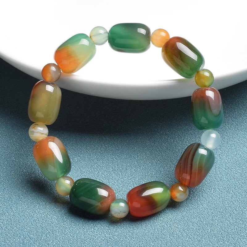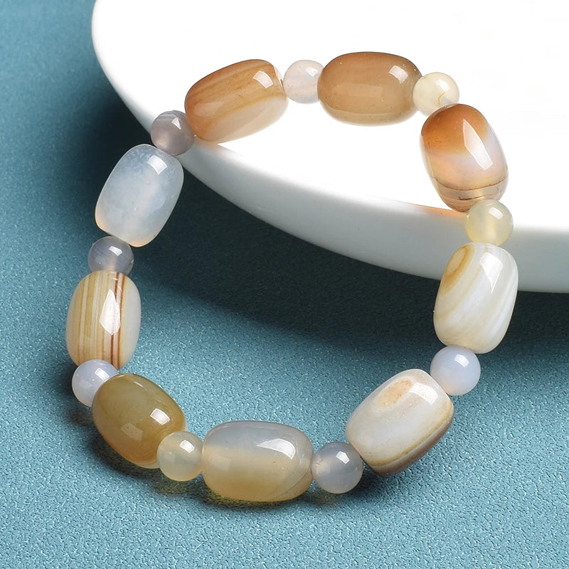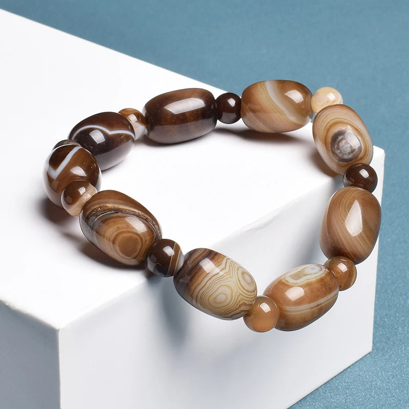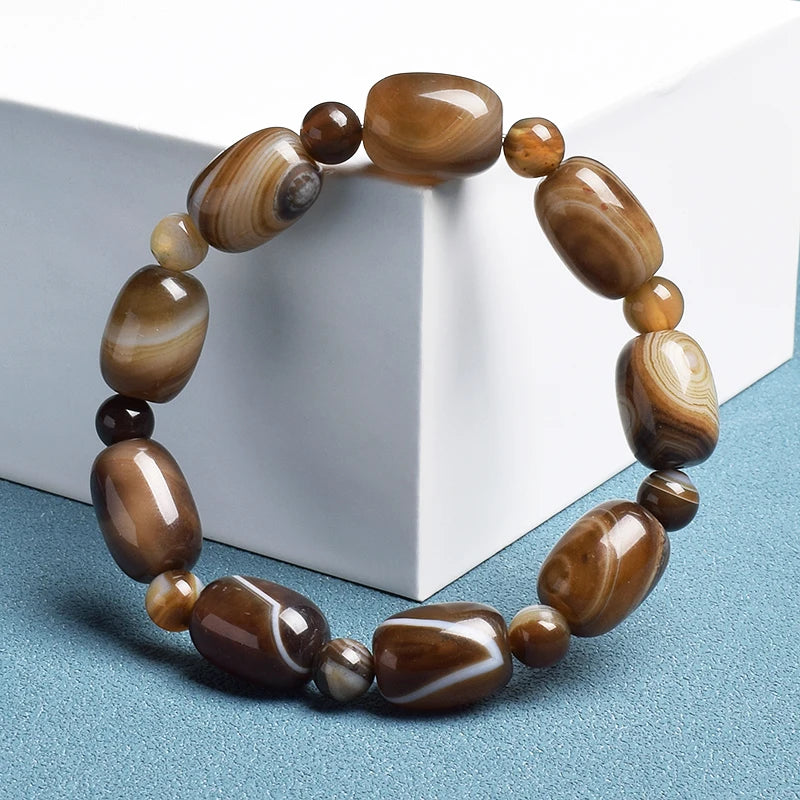 Showcase natural elegance with this handcrafted bracelet made from genuine coffee lace agate stones. Featuring unique cylindrical barrel-shaped beads, each stone displays beautiful brown and cream lace-like patterns, making every piece one of a kind. Designed with a comfortable elastic strand, this bracelet is suitable for both men and women. Stylish yet meaningful, it adds a refined touch to any outfit and makes a thoughtful gift for any occasion.