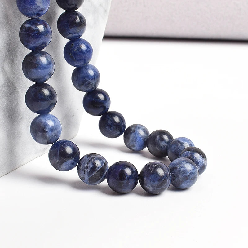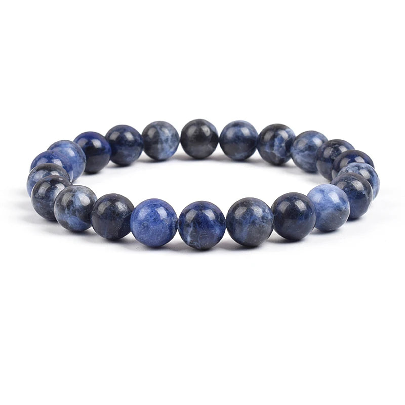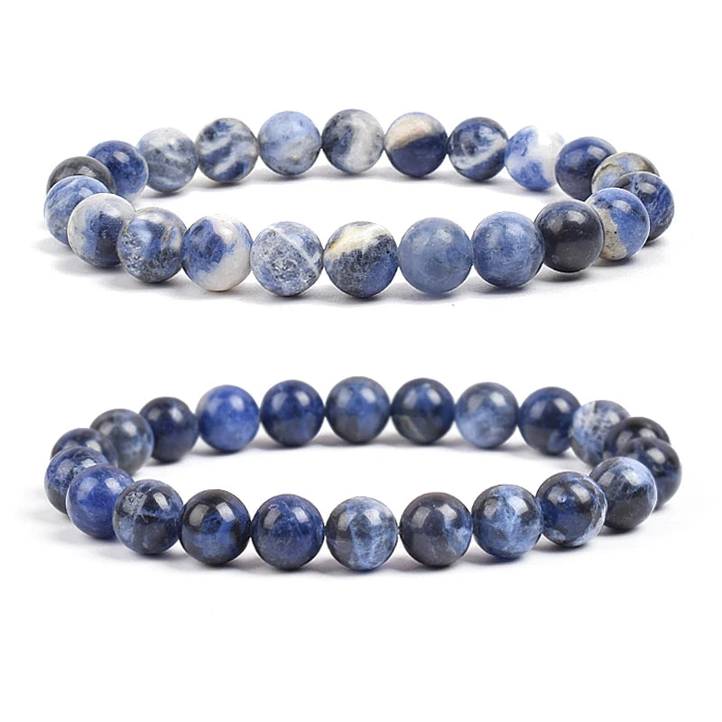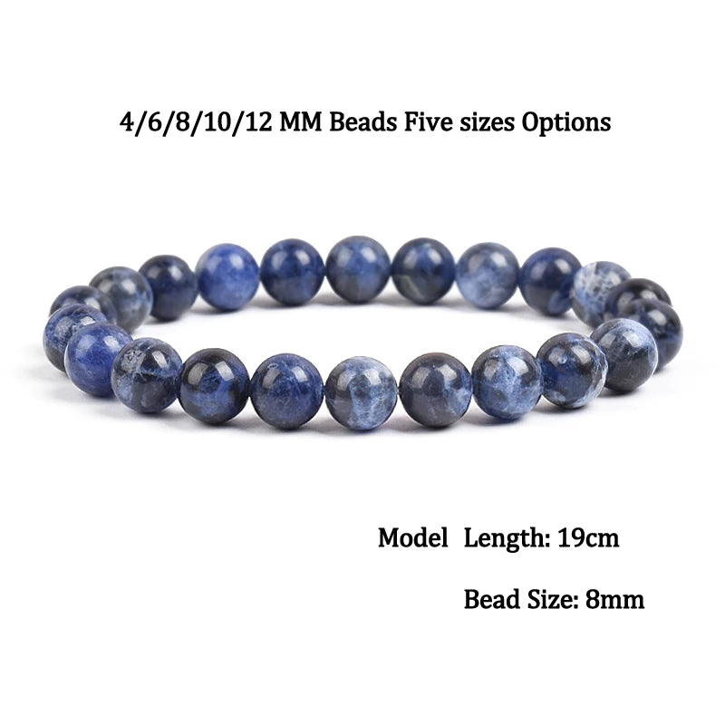 Elevate your style with this handcrafted bracelet made from genuine dark blue sodalite stones. Each round bead displays beautiful natural blue and white vein patterns, making every bracelet unique. Available in multiple bead sizes (4mm, 6mm, 8mm, 10mm, 12mm), this versatile bracelet is designed on a durable elastic line for a comfortable fit. Known as a stone of clarity and balance, sodalite brings both elegance and meaning to your everyday look. Perfect for men and women, it can be worn alone or stacked with other bracelets for a fashionable layered style.