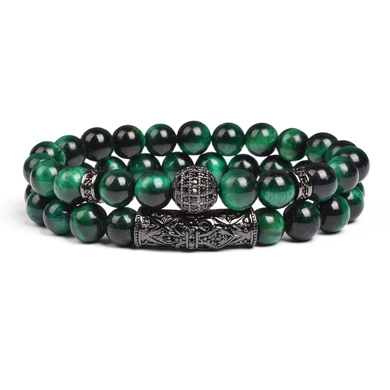 Bring energy and style to your look with this 2-piece bracelet set made from genuine 8mm tiger eye stone beads. Known for their grounding and protective properties, tiger eye stones add strength, balance, and confidence to your daily life. Each bracelet is accented with sparkling cubic zirconia ball charms for a touch of modern elegance. Designed on a durable elastic rope, these unisex bracelets are perfect for yoga, meditation, or casual wear, and make a thoughtful gift for both men and women.
